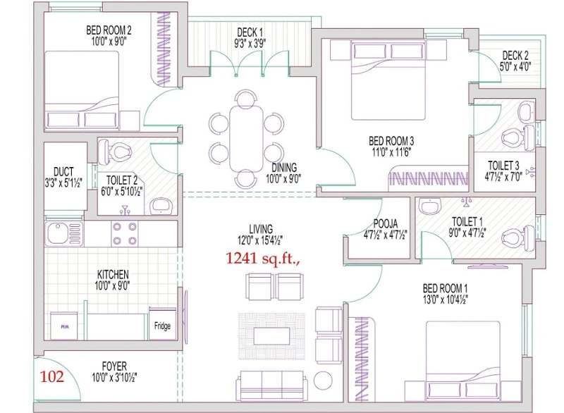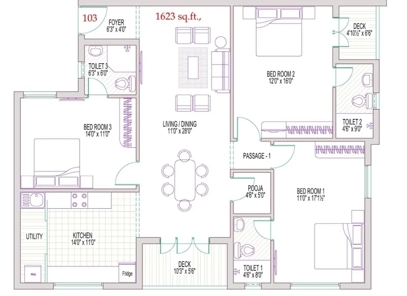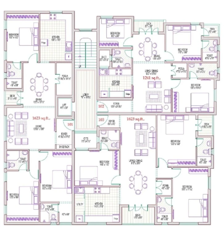 (Super Builtup Area) : 1241 – 1623 sq.ft