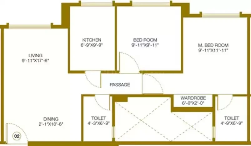 (Super Builtup Area) : 629 – 777 sq.ft