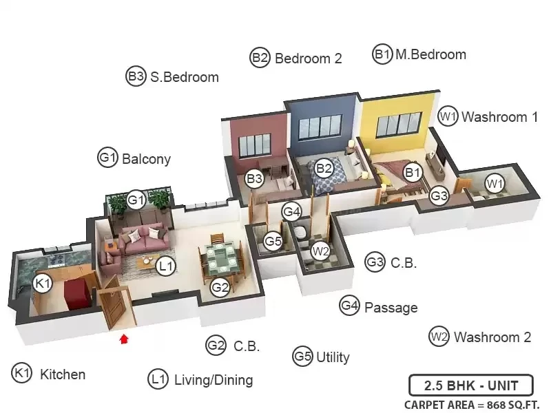 Super Builtup Area : 711 – 1052 sq.ft