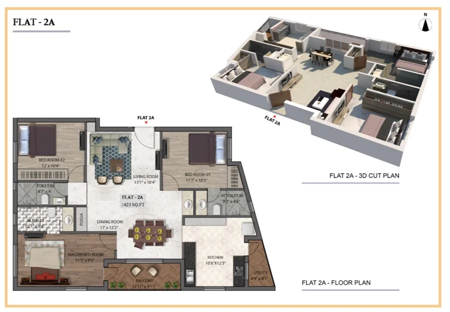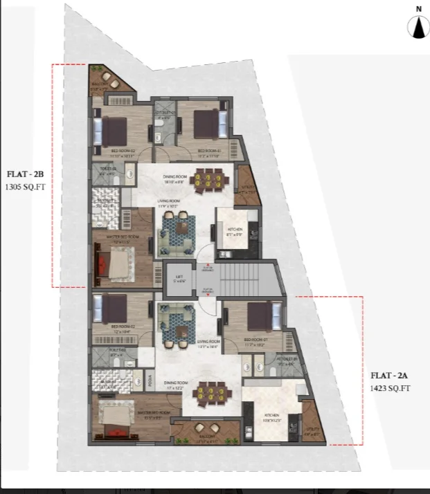 (Super Builtup Area) : 1328 – 2756 sq.ft