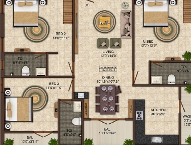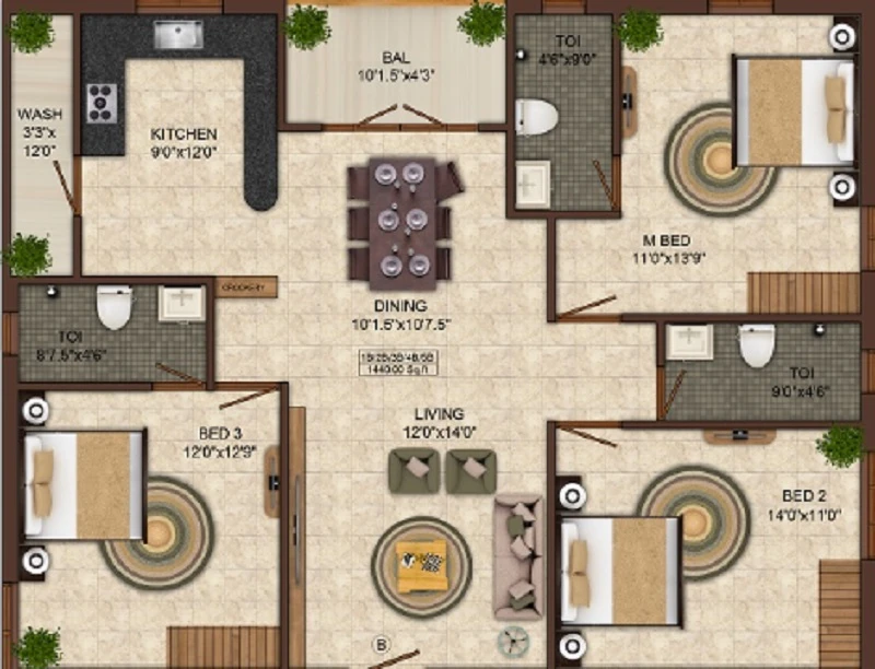 (Super Builtup Area) : 1440 – 1440 sq.ft