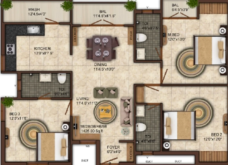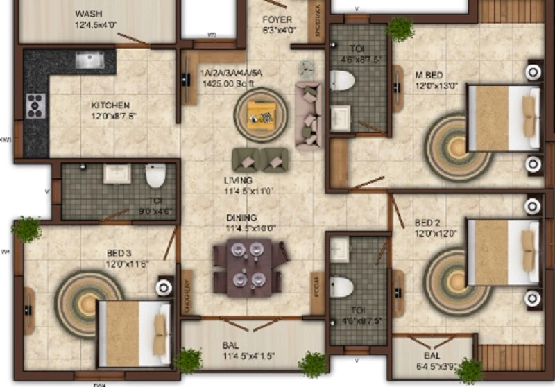 (Super Builtup Area) : 1425 – 1425 sq.ft
