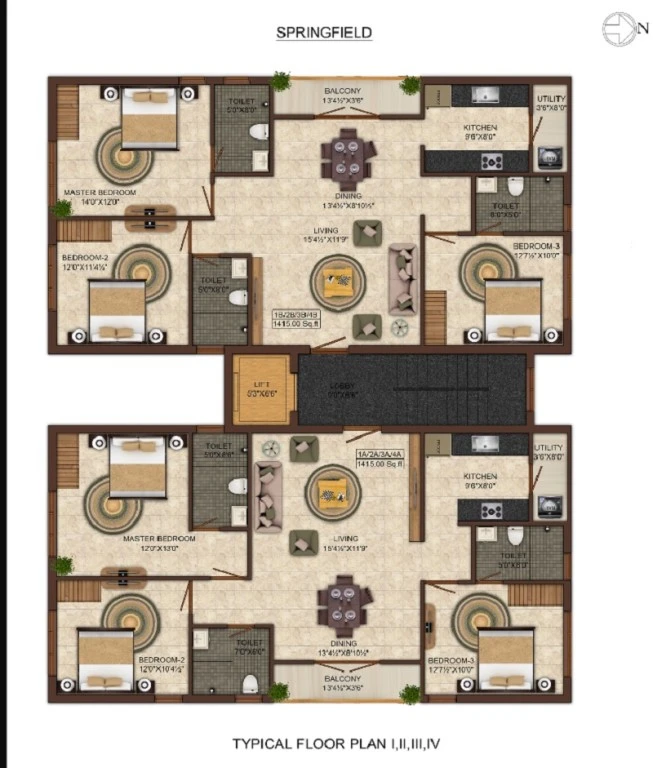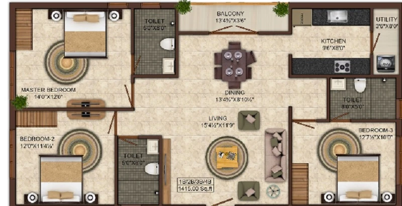 (Super Builtup Area) : 1415 – 1415 sq.ft