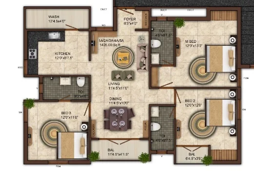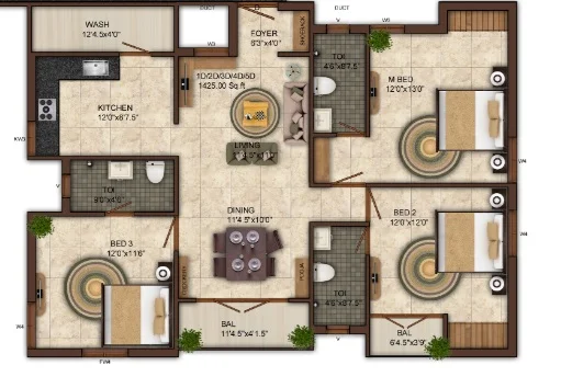 Super Builtup Area : 1425 – 1425 sq.ft