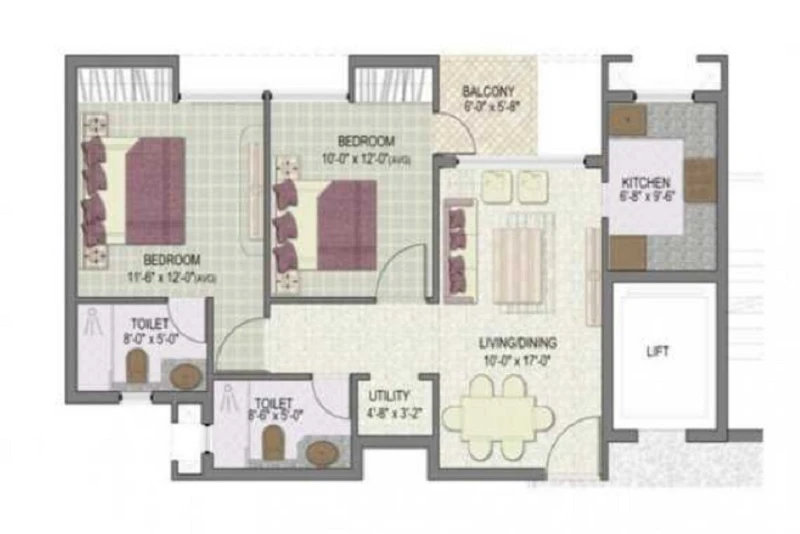 (Super Builtup Area) : 575 – 2250 sq.ft