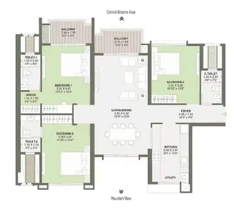 (Super Builtup Area) : 825 – 1522 sq.ft