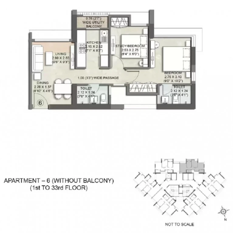 Super Builtup Area : 712 – 712 sq.ft