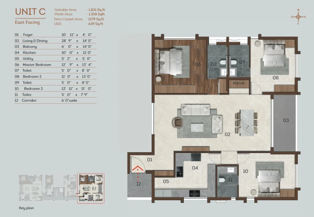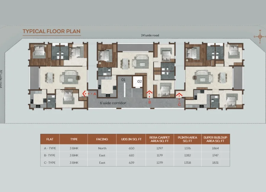 (Super Builtup Area) : 1831 – 1864 sq.ft