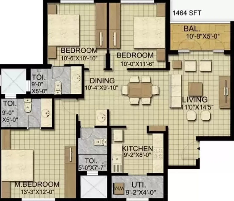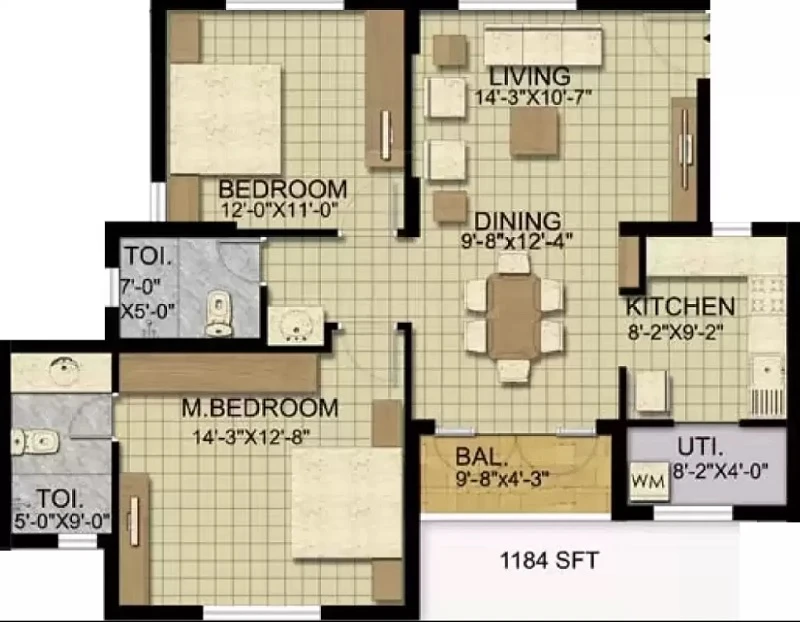 (Super Builtup Area) : 1184 – 1704 sq.ft