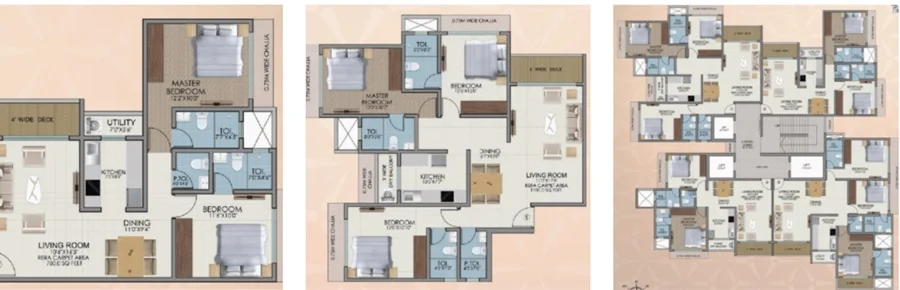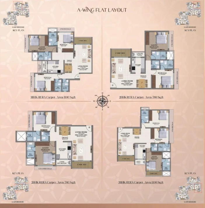 (Super Builtup Area) : 780 – 1100 sq.ft