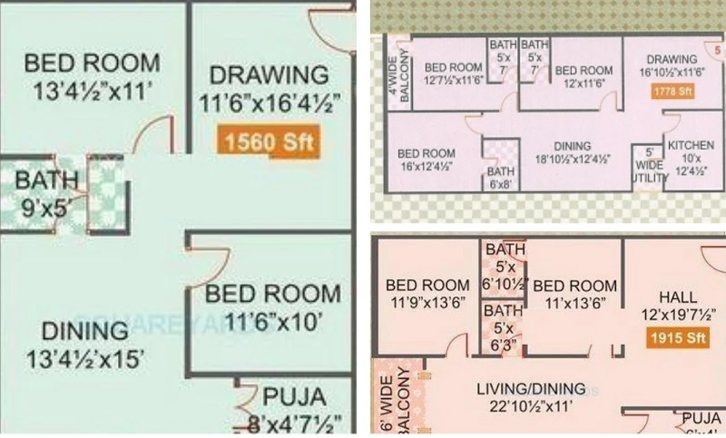 Super Builtup Area : 1560 – 2300 sq.ft