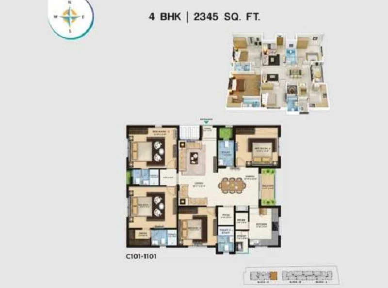 Super Builtup Area : 1195 – 2345 sq.ft