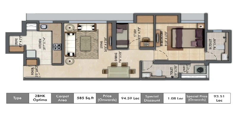 Super Builtup Area : 394 – 1077 sq.ft