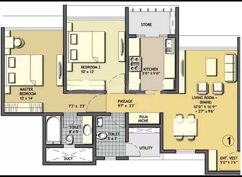 (Super Builtup Area) : 1008 – 2223 sq.ft