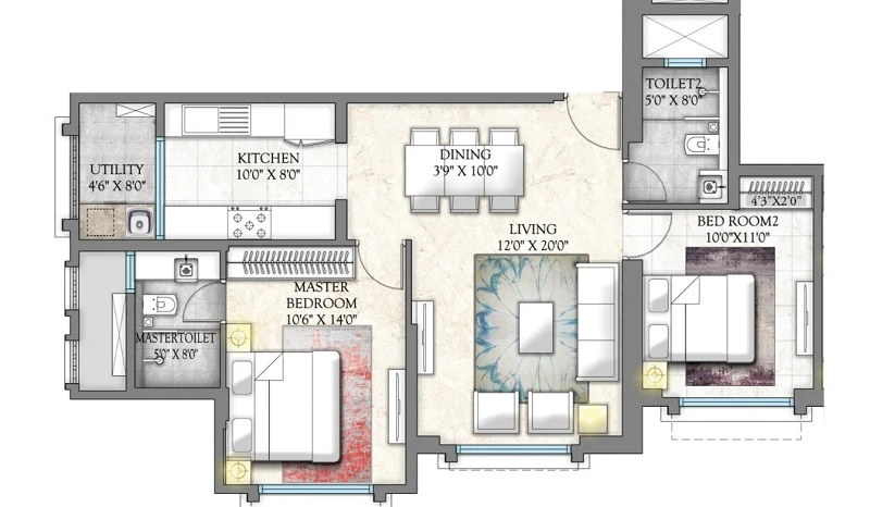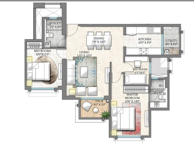 Super Builtup Area : 783 – 1614 sq.ft