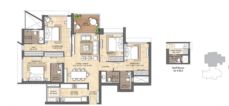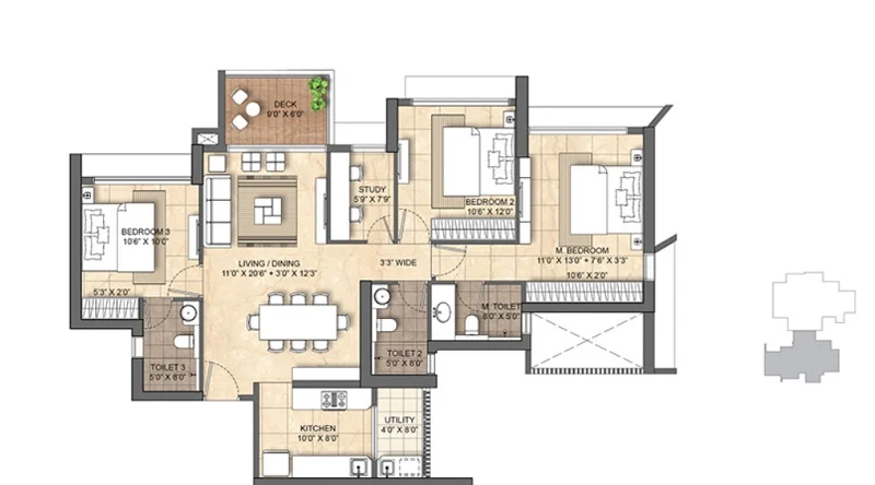 (Super Builtup Area) : 877 – 1960 sq.ft