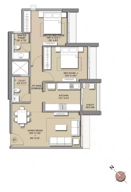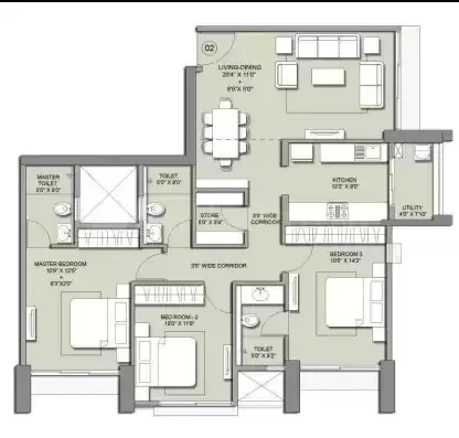 (Super Builtup Area) : 699 – 1082 sq.ft