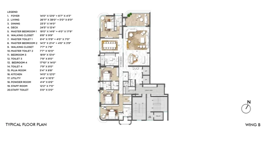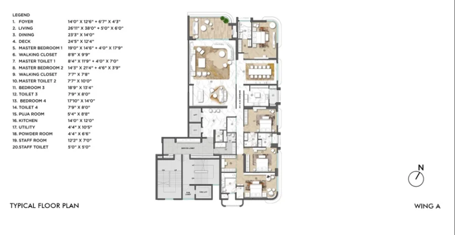 Super Builtup Area : 3831 – 5446 sq.ft