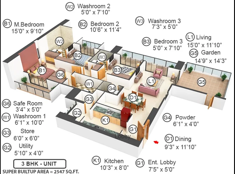 (Super Builtup Area) : 1431 – 2547 sq.ft