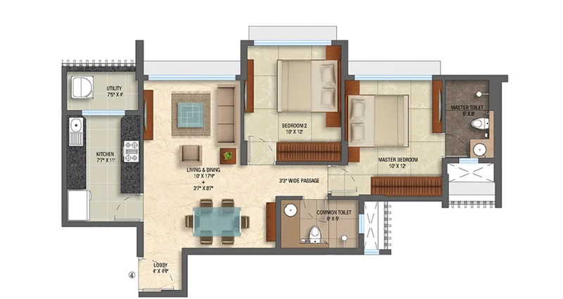 Super Builtup Area : 623 – 915 sq.ft