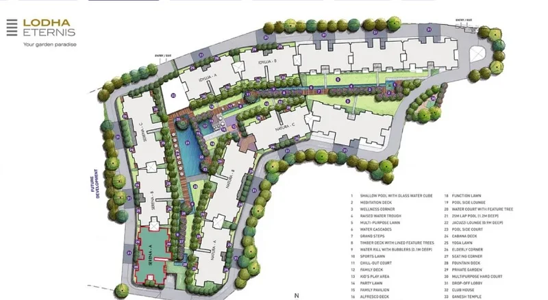 In terms of facilities, Lodha Eternis is loaded with multiple offerings such as Gymnasium, Power Backup. For families with kids, there is Children Play Area. It is a Gated Community. There is 24×7 Security. It is one of the most admired properties in India.