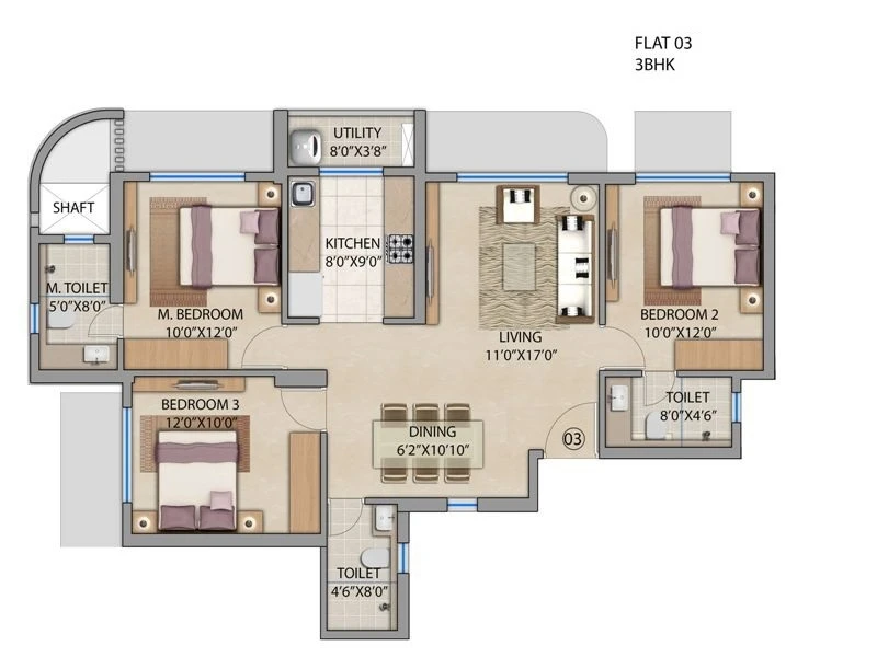 (Super Builtup Area) : 631 – 1022 sq.ft