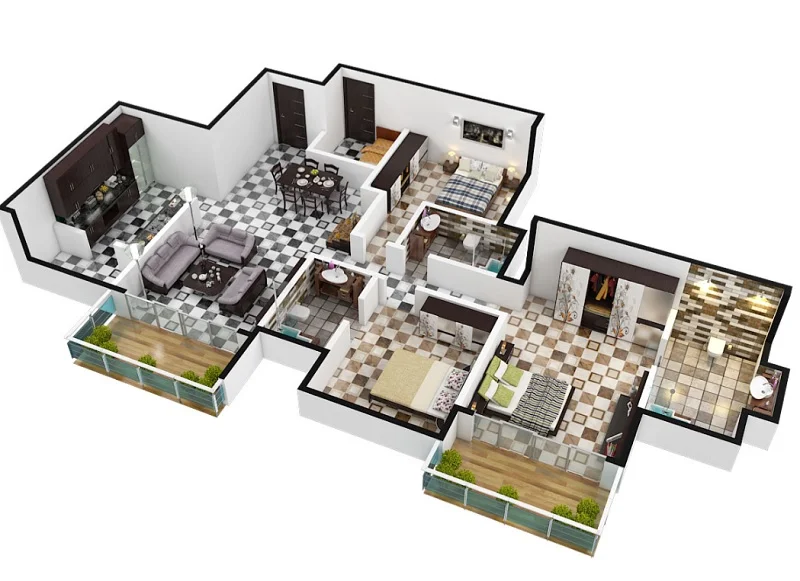 (Super Builtup Area) : 883 – 1217 sq.ft