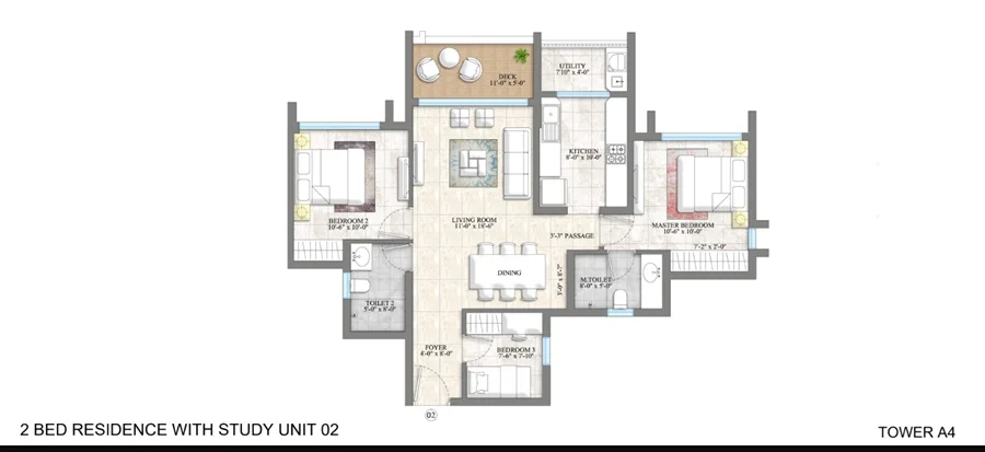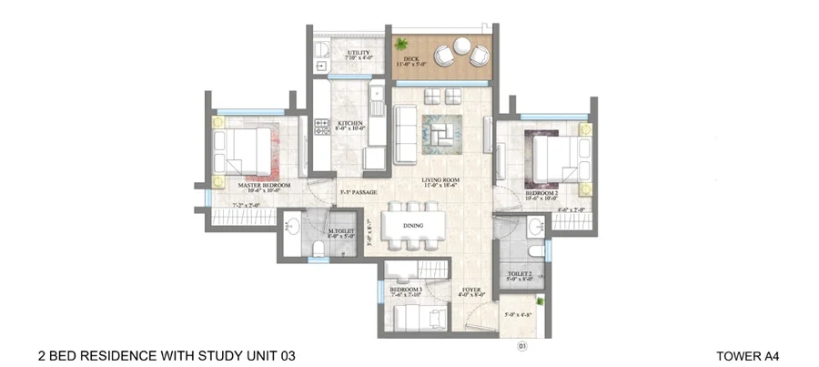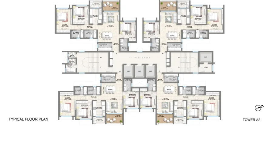 (Super Builtup Area) : 1075 – 1161 sq.ft