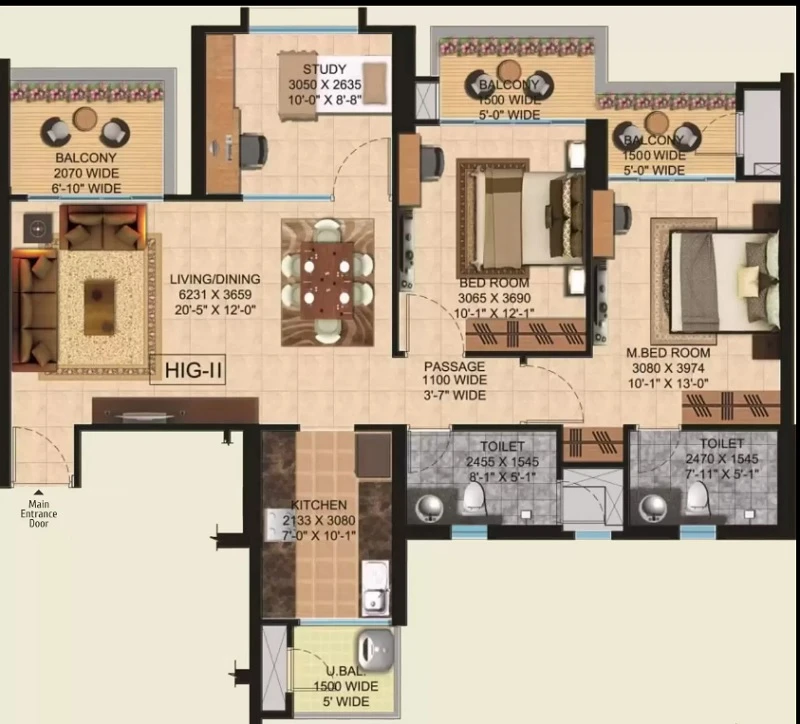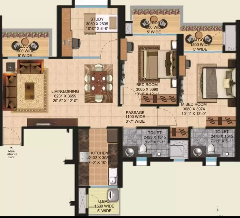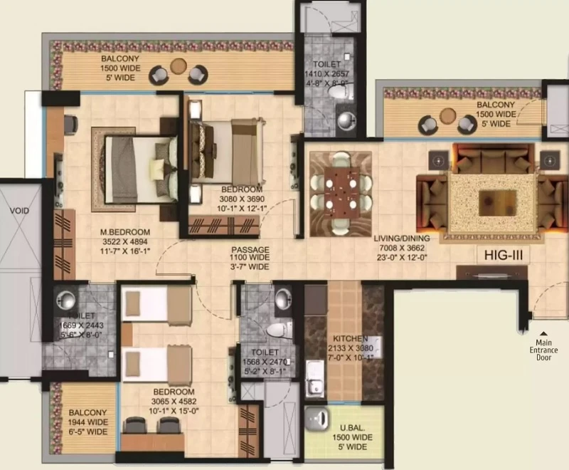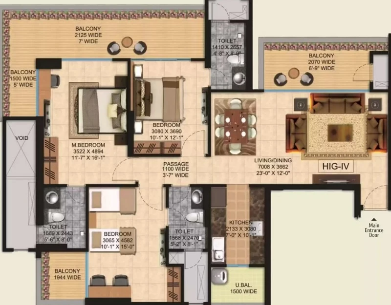 (Super Builtup Area) : 1380 – 2720 sq.ft