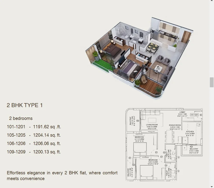 (Super Builtup Area) : 752 – 1037 sq.ft