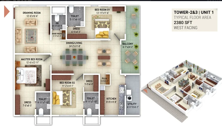 Configurations : 3, 4 BHK Apartments