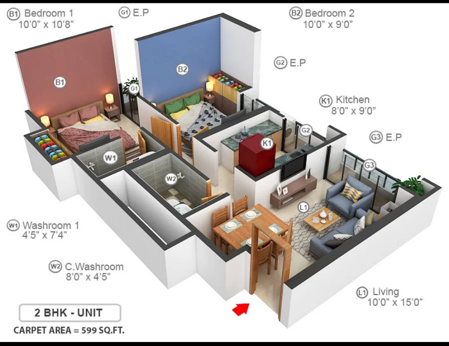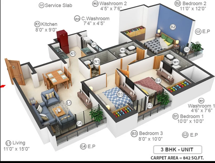 Super Builtup Area : 470 – 842 sq.ft