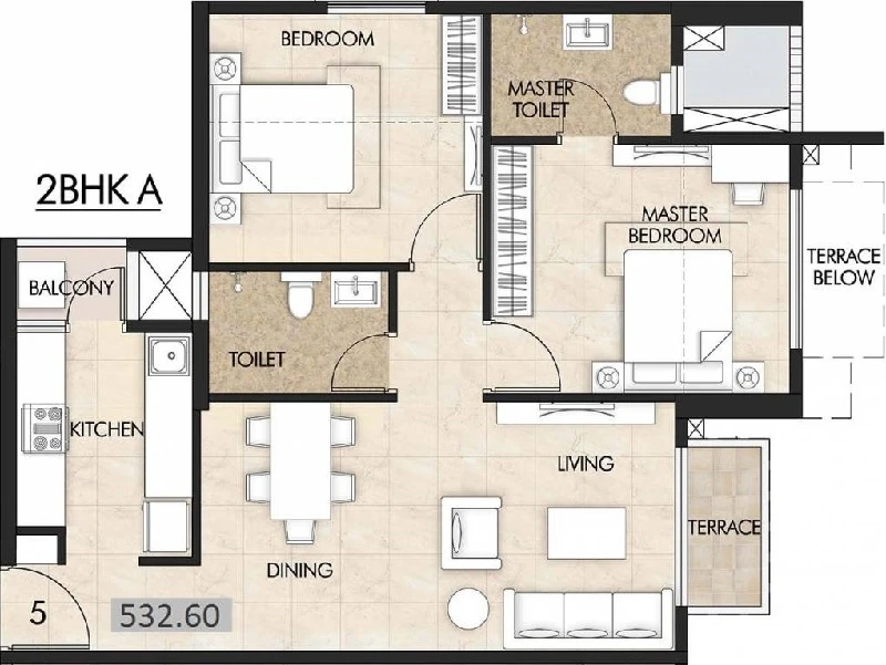 Super Builtup Area : 531 – 594 sq.ft