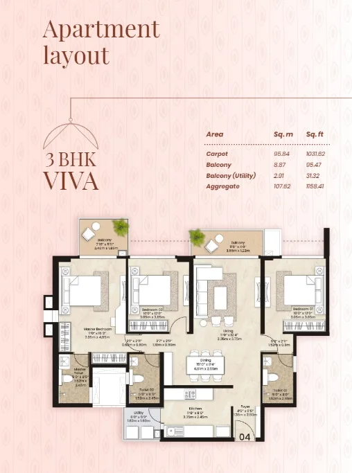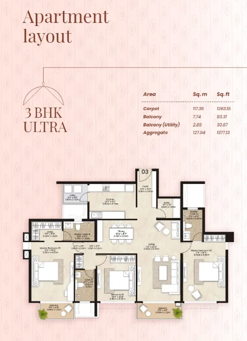 Super Builtup Area : 1031 – 1286 sq.ft
