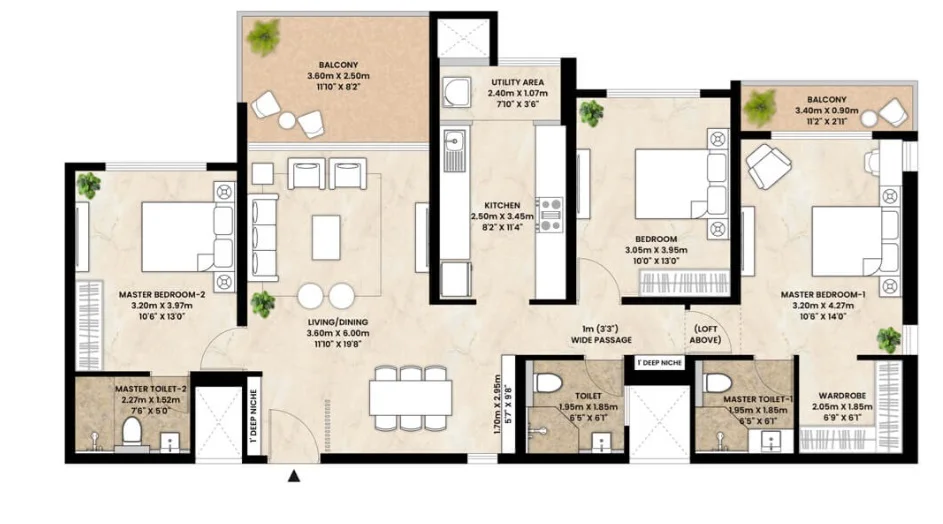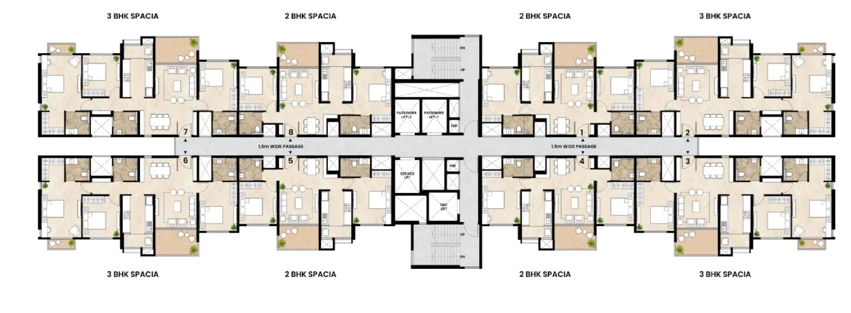(Super Builtup Area) : 769 – 1237 sq.ft