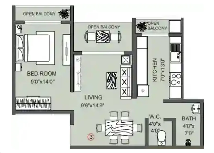 Super Builtup Area : 515 – 852 sq.ft
