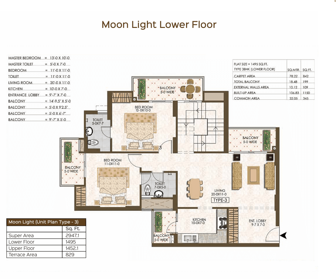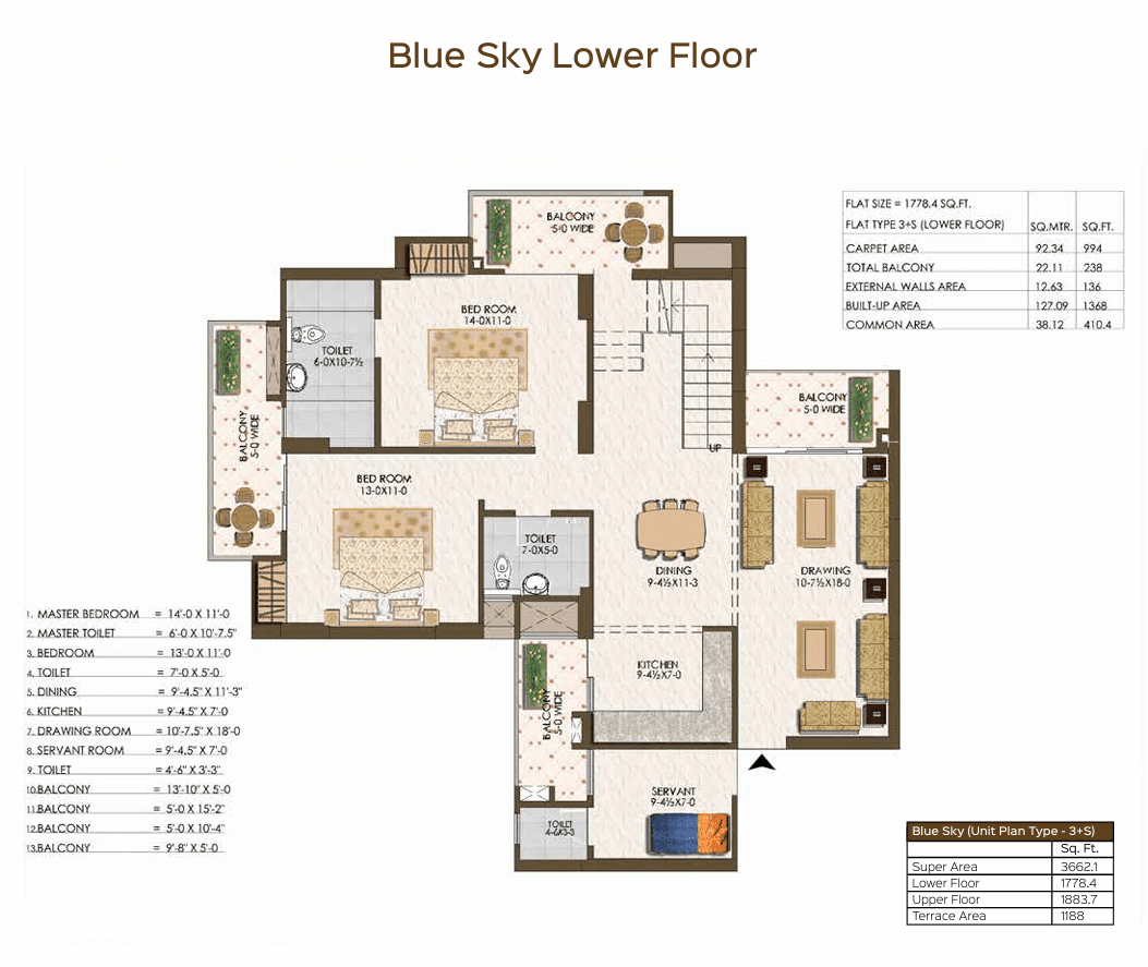 Configurations : 2, 2.5, 3, 3.5, 4 BHK Apartment,Duplex,Penthouse