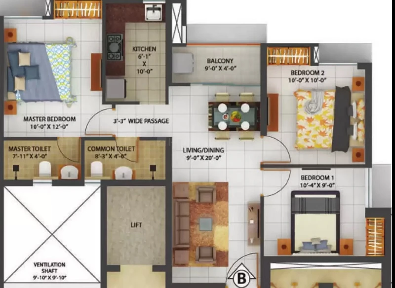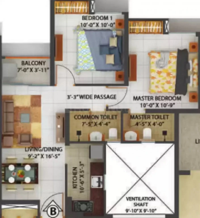 Super Builtup Area : 632 – 812 sq.ft