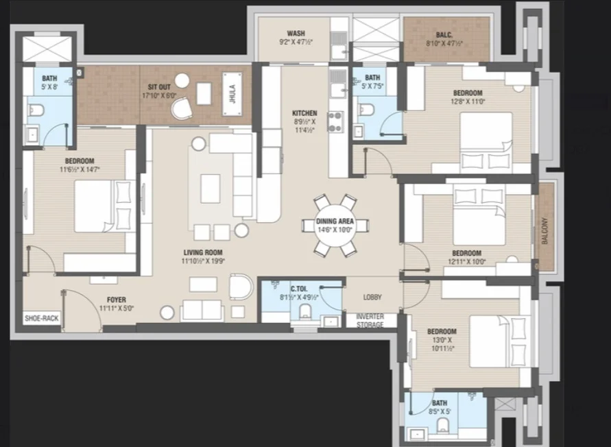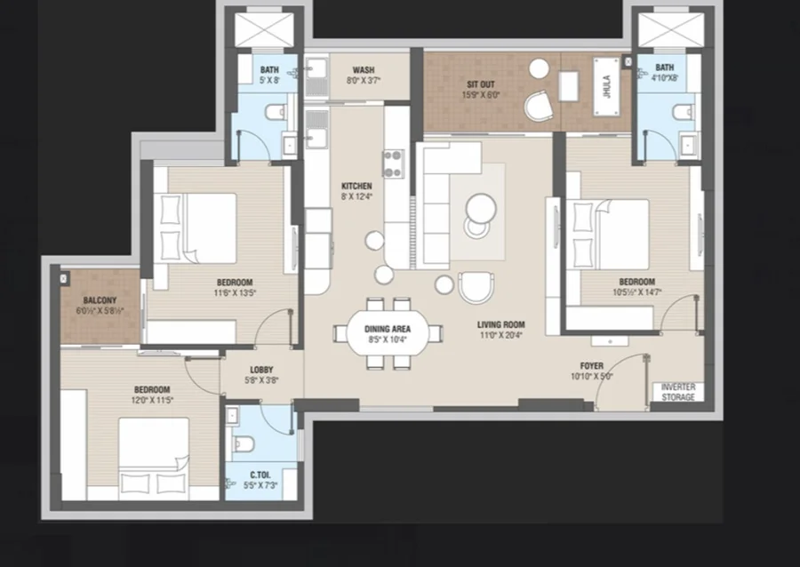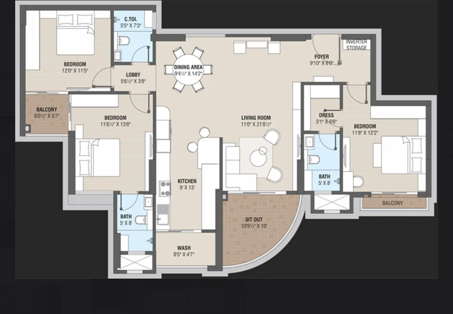 (Super Builtup Area) : 2287 – 6082 sq.ft