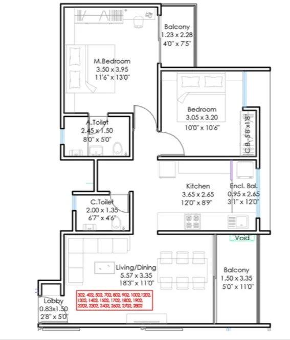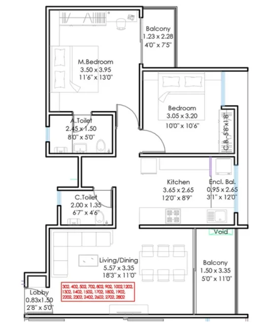(Super Builtup Area) : 686 – 1159 sq.ft