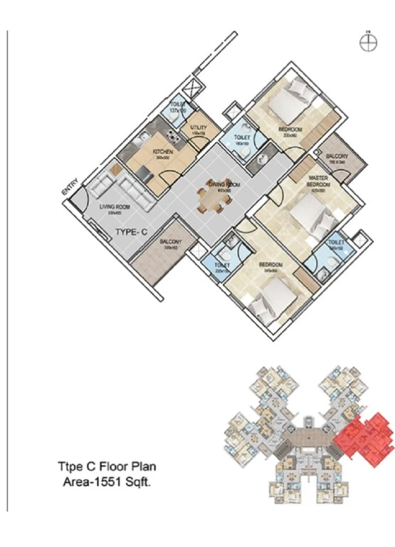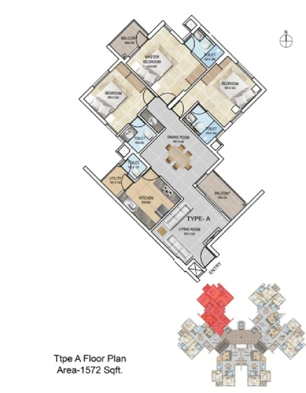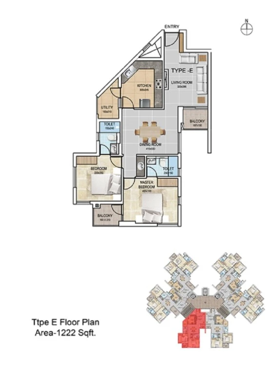 (Super Builtup Area) : 1222 – 1572 sq.ft