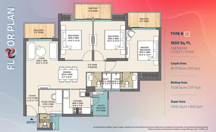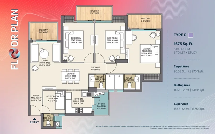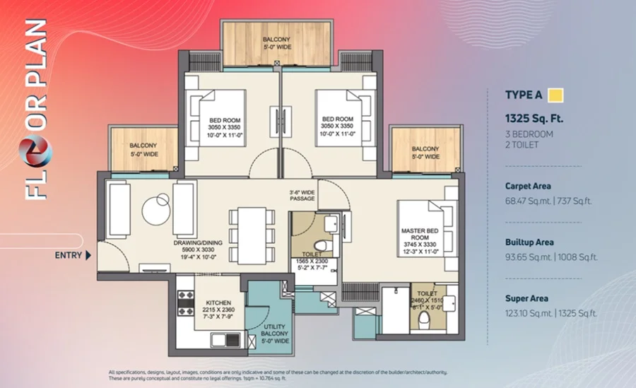 Super Builtup Area : 1325 – 1675 sq.ft
