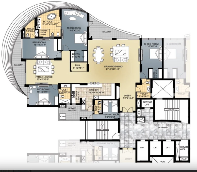 (Super Builtup Area) : 2900 – 4150 sq.ft
