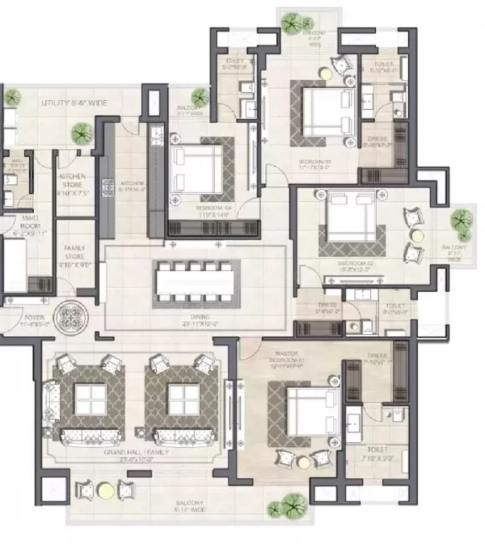(Super Builtup Area) : 3911 – 4248 sq.ft
