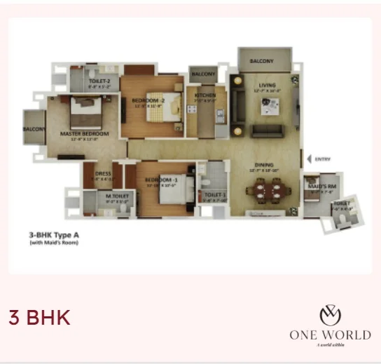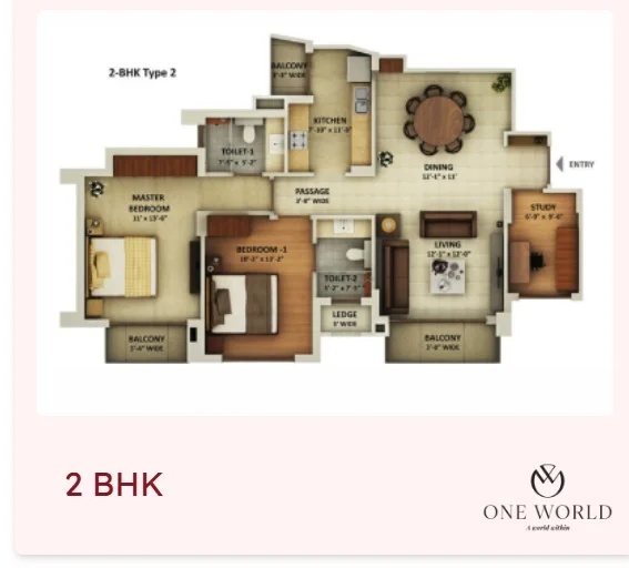 The floor plan of One World enables the best utilization of the space with spacious balconies, standard kitchen size and high-quality fixtures. Location advantage of One World is its proximity to Reputed Schools and Colleges. Unmatched connectivity from all the important landmarks and places. Easy access to everyday utility such as hospitals, schools, supermarts, parks, regional centers etc.