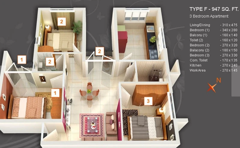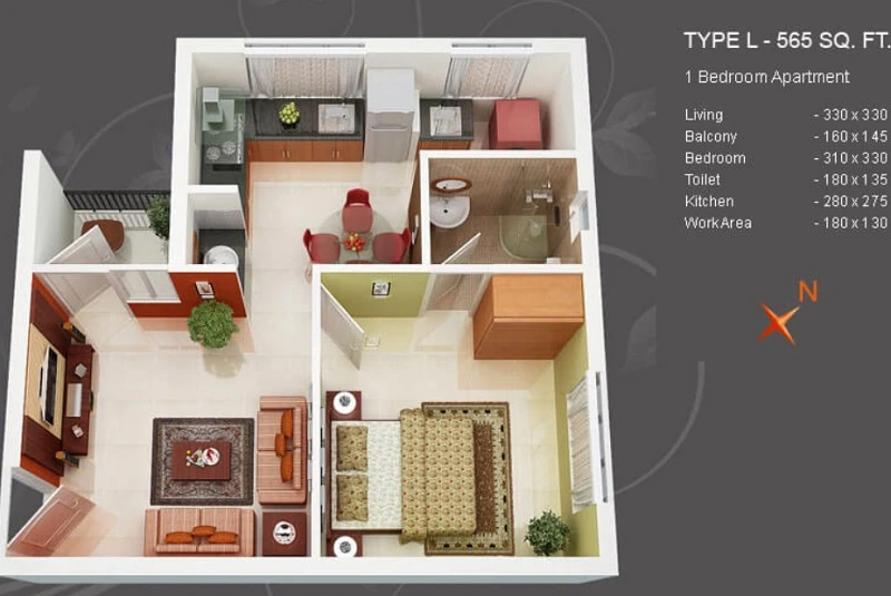 (Super Builtup Area) : 565 – 1467 sq.ft