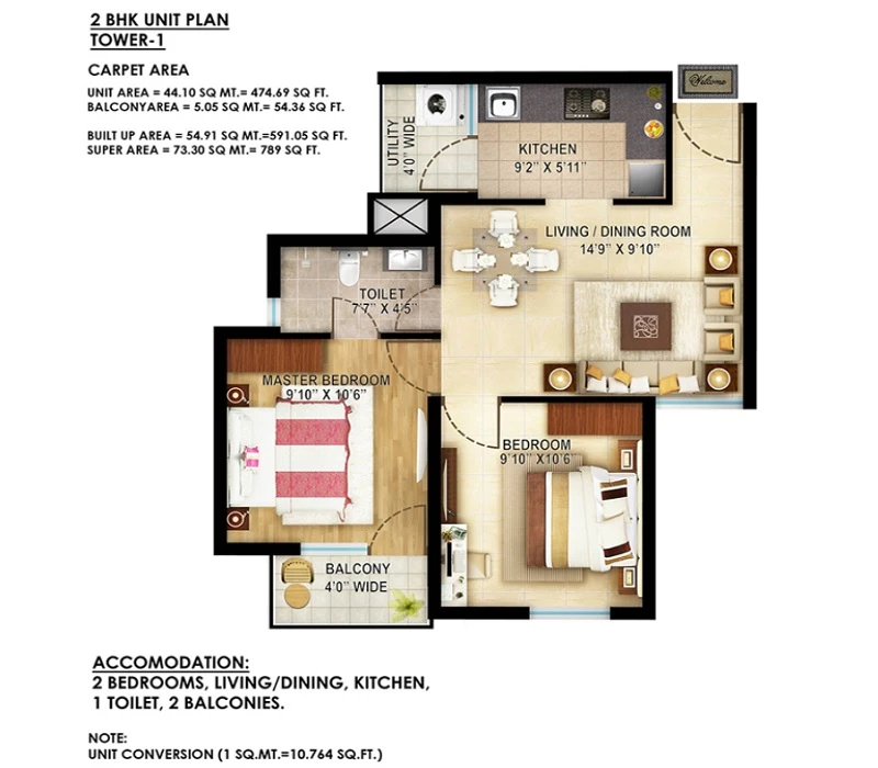(Super Builtup Area) : 789 – 789 sq.ft