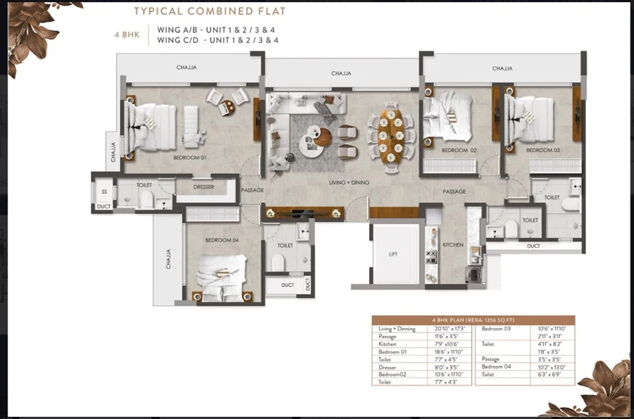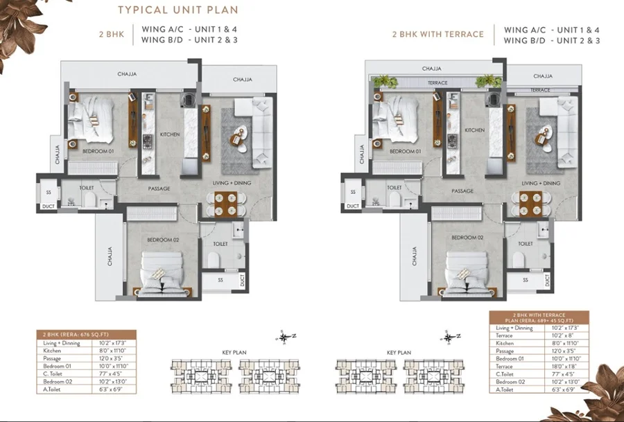 (Super Builtup Area) : 675 – 1350 sq.ft