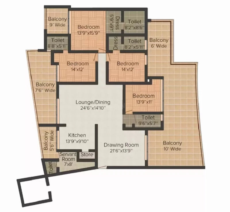 Configurations : 3,4 BHK Apartment