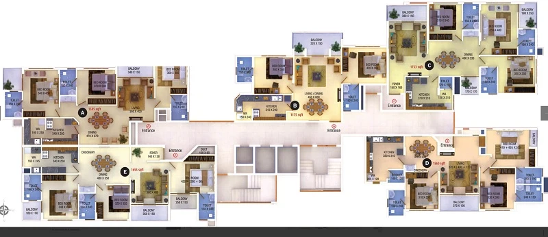 (Super Builtup Area) : 1175 – 1753 sq.ft